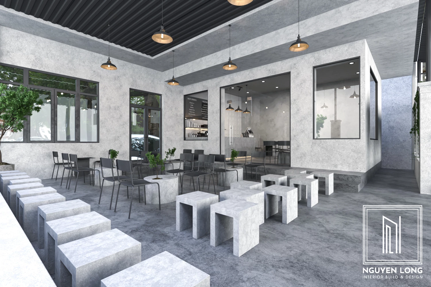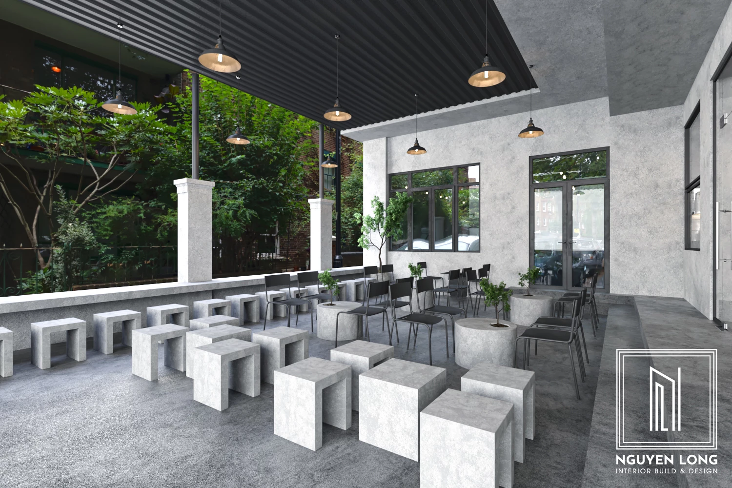 Cấu trúc mở: Không gian vỉa hè được tận dụng tối đa với hệ thống ghế ngồi bằng khối bê tông đúc, tạo sự kết nối không giới hạn giữa quán và nhịp sống phố thị.