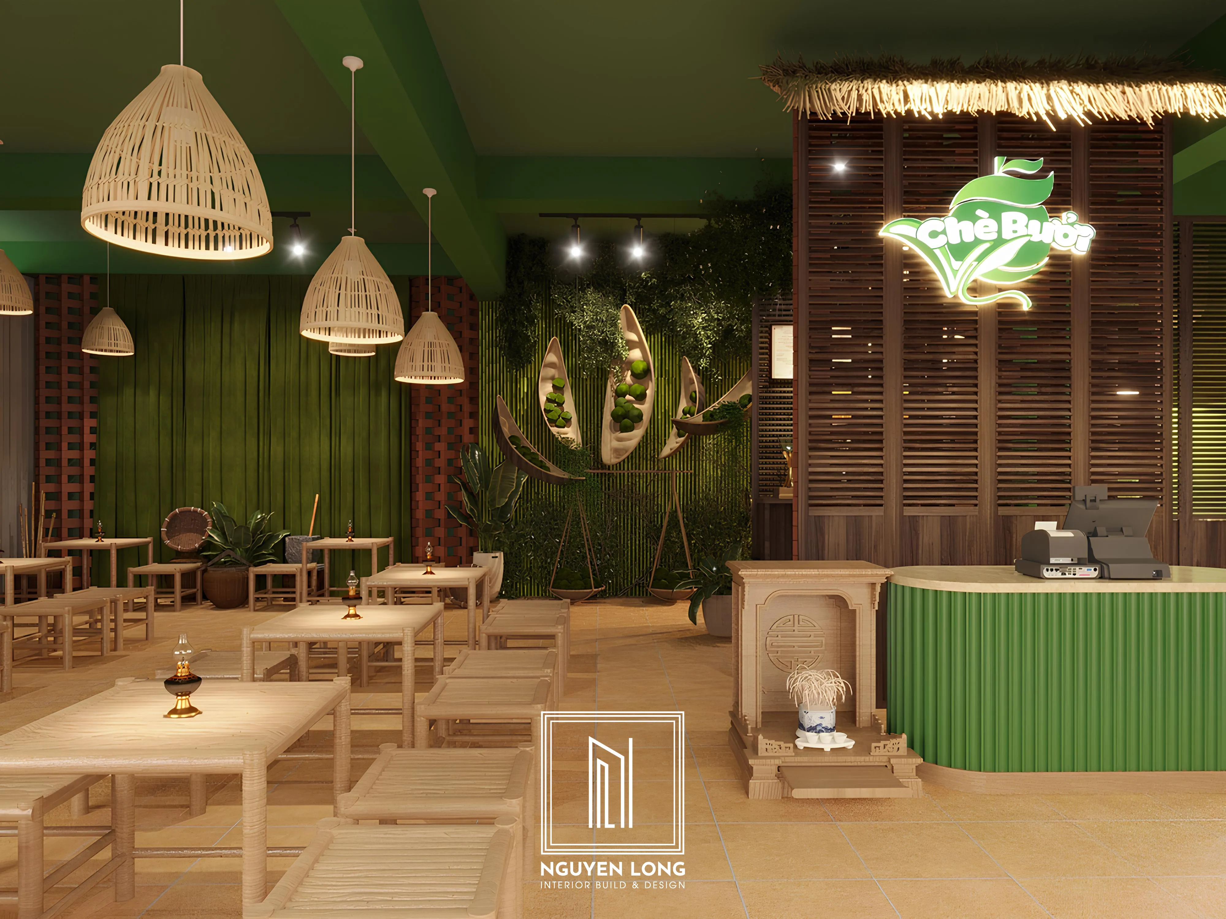 Dự án Chè Bưởi Vĩnh Long là một hành trình tìm về những giá trị nguyên bản, nơi hơi thở của làng quê Việt Nam được tái hiện một cách tinh tế trong một không gian hiện đại. Nguyen Long Interior đã khéo léo sử dụng các vật liệu tự nhiên để kể một câu chuyện về sự mộc mạc, gần gũi nhưng không kém phần ấn tượng.