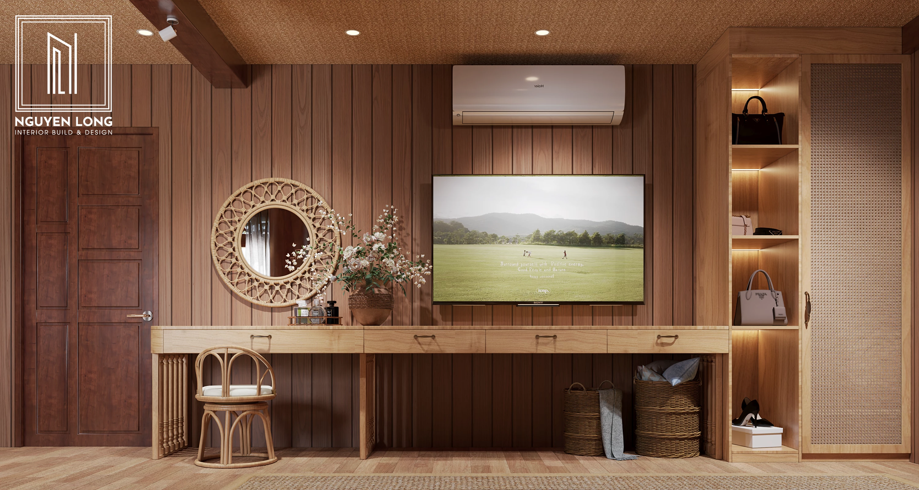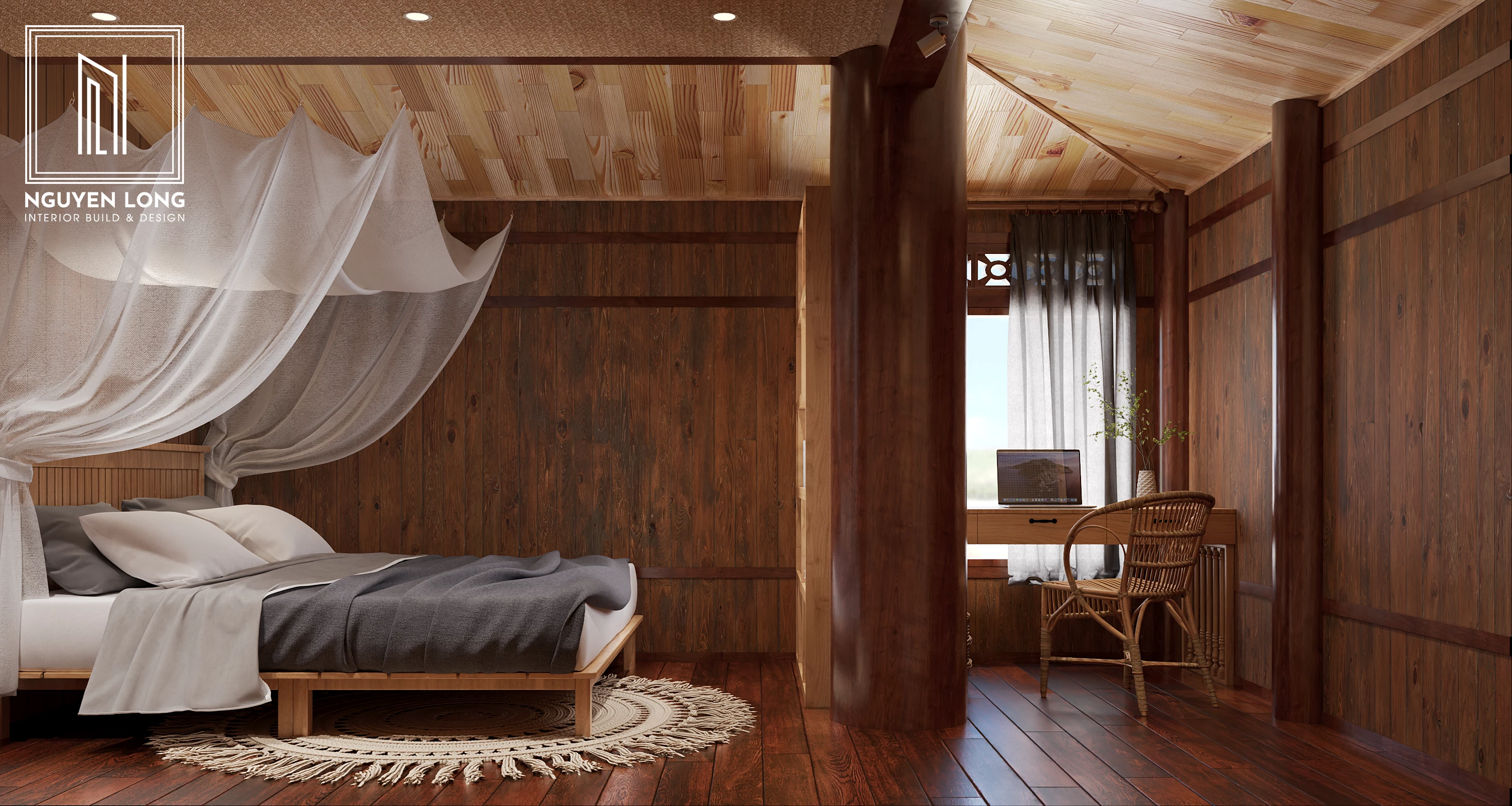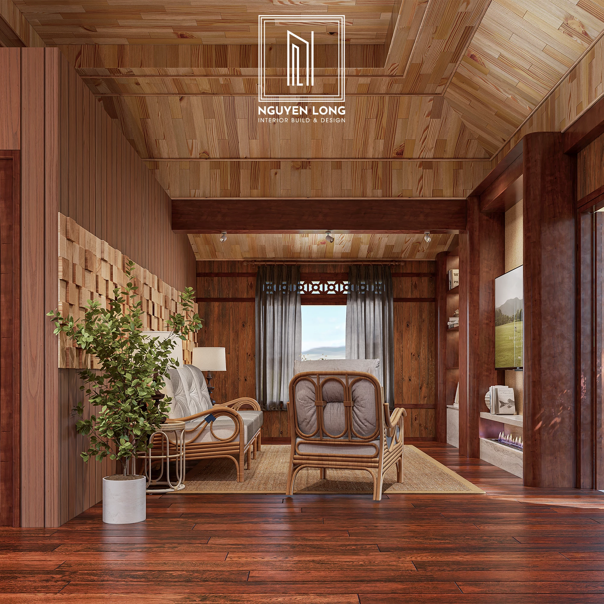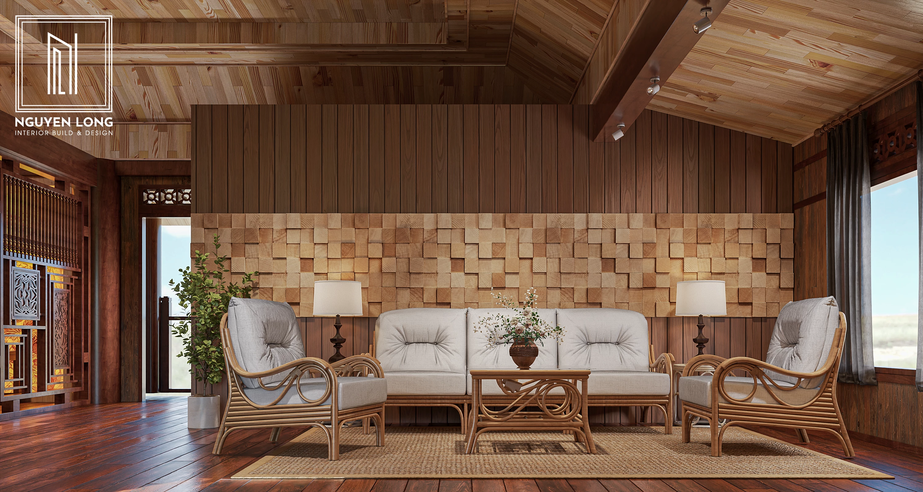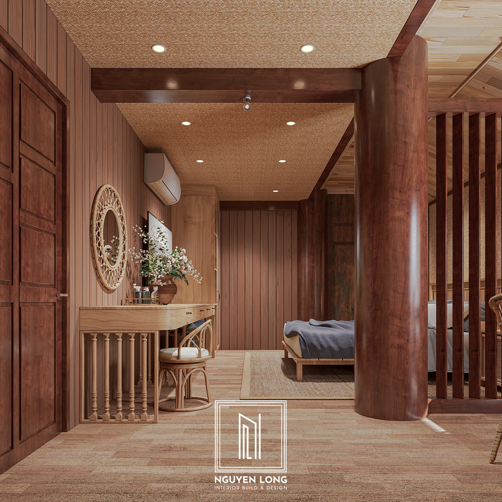 Văn hóa người Thái luôn gắn liền với sự mộc mạc của gỗ và những đường nét kiến trúc mang tính cộng đồng cao. Tại Đắk Nông lộng gió, Nguyễn Long Interior đã khéo léo chắt lọc những hình ảnh quen thuộc của ngôi nhà truyền thống để đưa vào một diện mạo mới: hiện đại hơn, tiện nghi hơn nhưng vẫn ấm áp tình thân. Đây là sự tôn vinh vẻ đẹp bản sắc trong dòng chảy của thời đại mới.