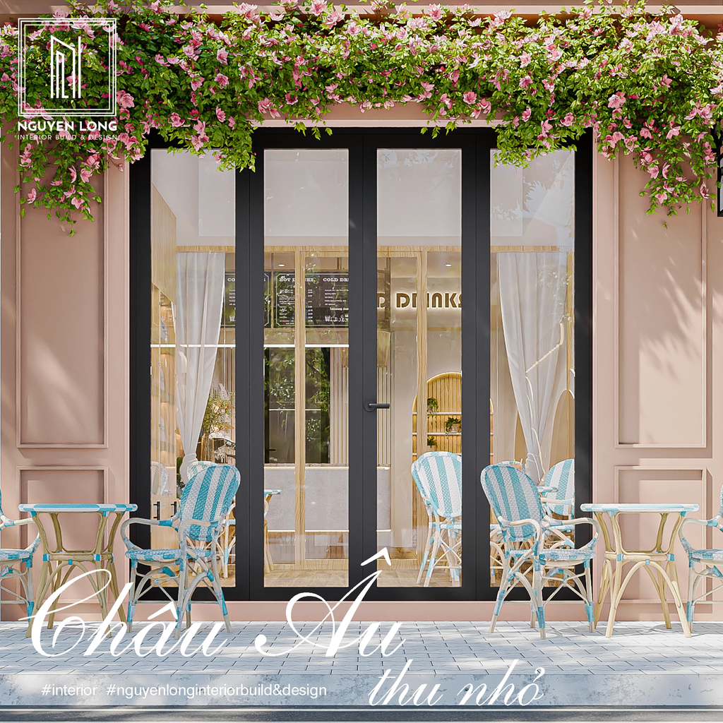 Thay vì những bảng hiệu khô khan, mặt tiền của Phuong Cafe chọn cách kể chuyện bằng màu sắc và thiên nhiên. Toàn bộ khối nhà được phủ một lớp áo màu hồng đất (dusty pink) đầy tinh tế, kết hợp cùng giàn hoa giấy rủ bóng xanh mướt, tạo nên một khung cảnh thơ mộng như những tiệm cafe nhỏ bên lề đường Paris.